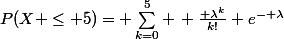 the_bongker a écrit:Si j'additionne les résultats de probas jusqu'à 5 à partir de la table de poisson, je devrait avoir le meme résultat que la formule?