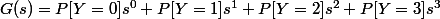 =P[Y=0]s^0+P[Y=1]s^1+P[Y=2]s^2+P[Y=3]s^3)