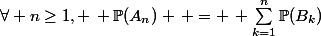 \, = \, \sum_{k=1}^n\mathbb{P}(B_k))