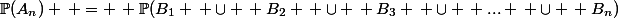 \, = \, \mathbb{P}(B_1 \, \cup \, B_2 \, \cup \, B_3 \, \cup \, ... \, \cup \, B_n))