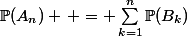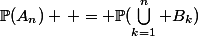 \, = \ \mathbb{P}(\bigcup_{k=1}^n B_k))