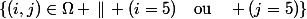 soit B = {(k1;k2) tels que k1 = 5 ou k2 = 5 }.