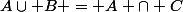 A union B = A inter C => BcAcC puis l'implication inverse mais je ne vois pas comment faire !!!