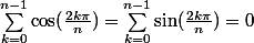 =\sum_{k=0}^{n-1}\sin(\frac{2k\pi}{n})=0\)