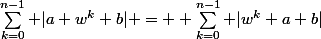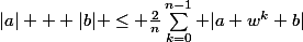 par contre pour n pair, en utilisant |u+v|+|u-v|>|u|+|v| on doit obtenir l'inégalité si je n'ai pas commis une autre bourde. (u=a et v=w^k.b)