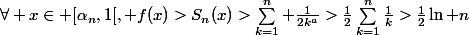 >S_n(x)>\sum_{k=1}^n \ \frac{1}{2k^a}>\frac{1}{2}\sum_{k=1}^n\ \frac{1}{k}>\frac{1}{2}\ln n)