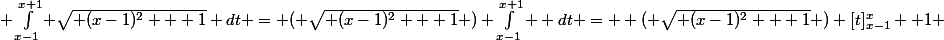 Euhhhhh, ça me semble plus que louche que, partant d'un encadrement dont la précision est moindre que l'unité, tu obtienne aprés intégration sur un intervalle de largeur 2 un encadrement dont la précision tend vers 0 : y'a forcément une erreur de calcul quelque part...Black Jack a écrit:(t-1) <= V(t²+1) <= t + 1/t