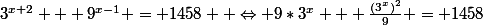 3^(x) + ((3^(3x))*(-9)) = 1458