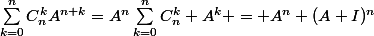 v=sommme a partir de k=0 jusqu'a n de C^k indice n A^(n+k)