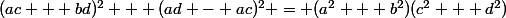 ^2 + (ad - ac)^2 = (a^2 + b^2)(c^2 + d^2))