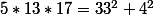 5*13*17=(4+1)*(9+4)*(16+1)=(a²+b²)*(c²+d²)*(e²+f²)