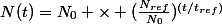 =N_0 \times (\frac{N_{ref}}{N_0})^{(t/t_{ref})})