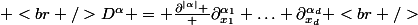 La notation représente la dérivée alpha1-ième par rapport à la première variable x1, la dérivée alpha2-ième par rapport à la deuxième variable ... et la dérivée alpha n_ième par rapport à la d_ième variable.