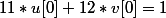 il y a une solution particulière évidente : (-1;1), à celle-ci il suffit de rajouter les solutions de l'équation homogène : 11u+12v=0 c'est à dire : (12k;-11k) avec k dans Z.