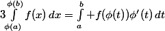 }^{\phi(b)}f(x)\,dx\ =\ \int_a^b f(\phi(t))\phi'(t)\,dt)