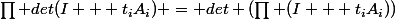Je suis un étudiant en master, j'ai trouvé un exercice sur les déterminant d'une famille de matrices, La question est ce qu'il y'a une relation entre le déterminant de (I+tiAi) pour i allant de 1 à n, et le déterminant de: