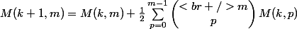 où m,k sont des entiers naturels, avec M(k,0)=1 et M(0,m)=0.