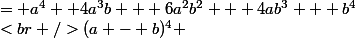 ^{4} &= a^{4} +4a^{3}b + 6a^{2}b^{2} + 4ab^{3} + b^{4}\\<br />(a - b)^{4} &= a^{4} + b^{4}-4a^{3}b + 6a^{2}b^{2} -4ab^{3} \\<br />\end{align})