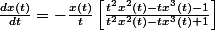 }{dt}=-\frac{x(t)}{t}\left[\frac{t^2x^2(t)-tx^3(t)-1}{t^2x^2(t)-tx^3(t)+1}\right])