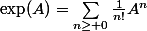 =\sum_{n\geq 0}\frac{1}{n!}A^n\)