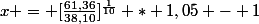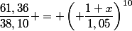 61,36 = 38,10 * ((1+x)^10/(1,05 ^ 10))