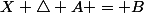 je ne vois comme solution que A\B ! mais je sais pas sure sachant qu'une équation ensembliste est loin d'avoir une seule solution .