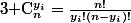 On tire y_i positions parmi n indépendemment de l'ordre et sans répétition. On a donc une combinaison