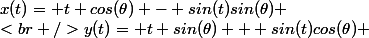 = t cos(\theta) - sin(t)sin(\theta) \\<br />y(t)= t sin(\theta) + sin(t)cos(\theta) \\)