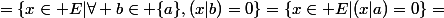que c'est l'ensemble des x tel que quelquesoit a de E a/x=0,