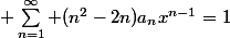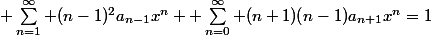 ^{2}a_{n-1}x^{n}}+\displaystyle \sum_{n=0}^{\infty} {(n+1)(n-1)a_{n+1}x^{n}}=1)