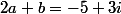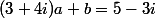 Je suggère de soustraire membre à membre les deux égalités 2a+b=-5+3i et (3+4i)a+b=5-3i , d'en tirer a, etc.