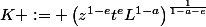 ^{\frac{1}{1-e}} = z^{\frac{a}{1-a-e}}\left(t^{\frac{1-e}{1-a-e}e}L^{\frac{1-e}{1-a-e}(1-a)}\right)^{\frac{1}{1-e}}=\left(z^at^eL^{1-a}\right)^{\frac{1}{1-a-e}})