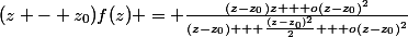 f(z) = \frac{(z-z_0)z + o(z-z_0)^2}{(z-z_0) + \frac{(z-z_0)^2}{2} + o(z-z_0)^2})
