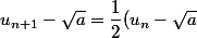 = (\dfrac{1}{2} )^2(u_{n-1} - \sqrt{a} )=(\dfrac{1}{2} )^3(u_{n-2} - \sqrt{a} ))