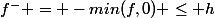 Deuxième question : , si h et g sont tous les deux inférieurs à l'infini tu as une formule simple pour f non ? (tu les supposes positifs d'ailleurs h et g ?) la formule du min devrait t'aider, mais si ce n'est pas le cas, si f<0 que vaut