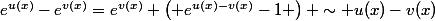 }-e^{v(x)}=e^{v(x)} \left( e^{u(x)-v(x)}-1 \right) \sim u(x)-v(x))