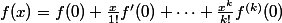=f(0)+\frac{x}{1!}f'(0)+\cdots+\frac{x^{k}}{k!}f^{(k)}(0))