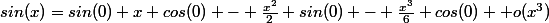 =sin(0)+x cos(0) - \frac{x^{2}}{2} sin(0) - \frac{x^{3}}{6} cos(0)+ o(x^{3}))