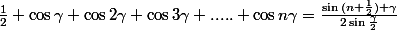 \sin\frac{t}{2}=\sin\frac{t}{2}+2\sin \frac{t}{2}\cos t+\ldots+2\sin \frac{t}{2}\cos nt=\ldots=\sin\left(n+\frac{1}{2}\right)t)