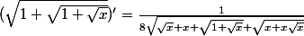 '=\frac{1}{8\sqrt{\sqrt{x}+x+\sqrt{1+\sqrt{x}}+\sqrt{x+x\sqrt{x}}}})