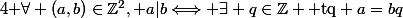 \in\mathbb{Z}^2, a|b\Longleftrightarrow \exists q\in\mathbb{Z} {\rm tq} a=bq)