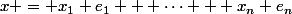 alors e1,..., en sont des vecteurs de ton espace et x=somme(x_i*e_i, i=1...n)