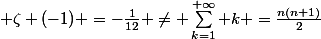 =-\frac{1}{12} \neq \sum_{k=1}^{+\infty} k =\frac{n(n+1)}{2})