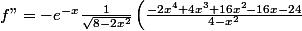 f"(x) = e^(-x) (8-2x²)^0.5 (1 + 2x (8-2x²)^-1) -