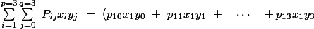 \quad + \quad \cdots \quad + \quad (p_{30}x_3y_0 ~ + \quad \cdots \quad + ~ p_{33}x_3y_3))
